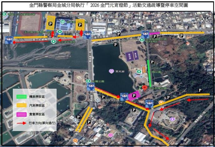 2026年金門元宵燈節一系列活動將於2月28日及3月1日共兩日16時至21時止,在金城鎮莒光共融公園盛大舉辦。因應活動可能帶來之人潮與車潮,金門縣警察局金城分局配合活動主辦方,將於2月28日及3月1日兩日15時開始在金城鎮浯江北堤路、西海路三段及賢城路等活動周邊道路實施交通疏導管制工作,以維持鄉親人 ...更多