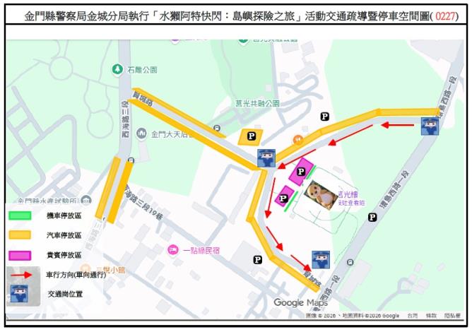 「水獺阿特快閃:島嶼探險之旅」開幕儀式活動,於2月27日10時至16時在金城鎮莒光樓前廣場舉辦。適逢228連假,因應活動可能帶來之人、車潮,金門縣警察局金城分局配合活動主辦方,將於當(27)日9時開始在活動周邊道路實施交通疏導管制工作,以維持道路行車順暢及人車安全,並呼籲前往參與之民眾及行經該路段的 ...更多