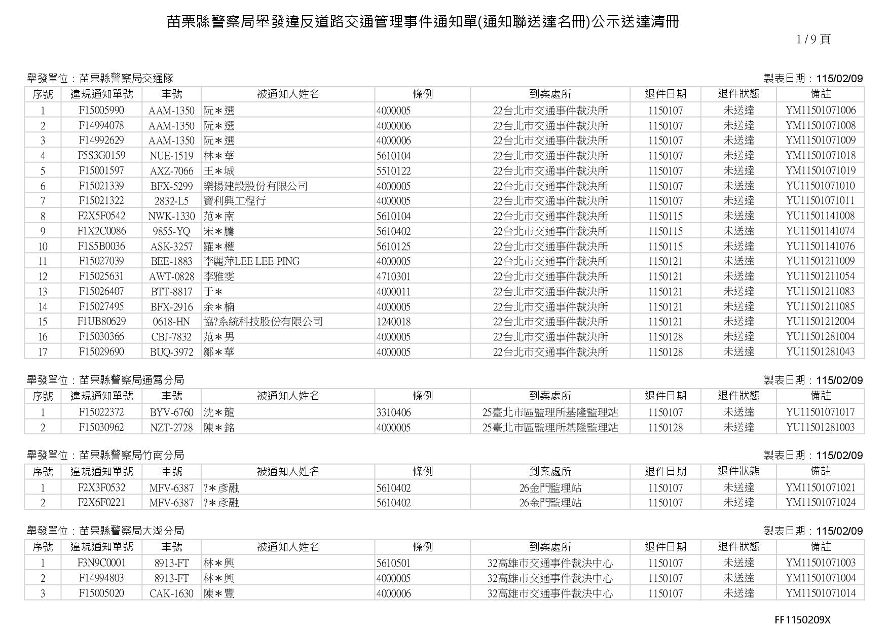苗栗縣警察局1150211公告