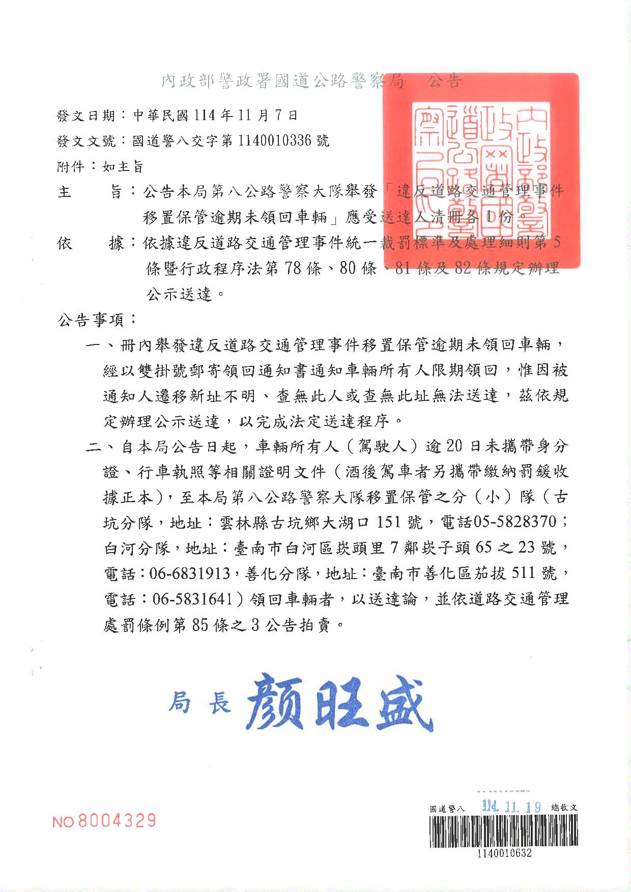 內政部警政署國道公路警察局第八公路警察大隊