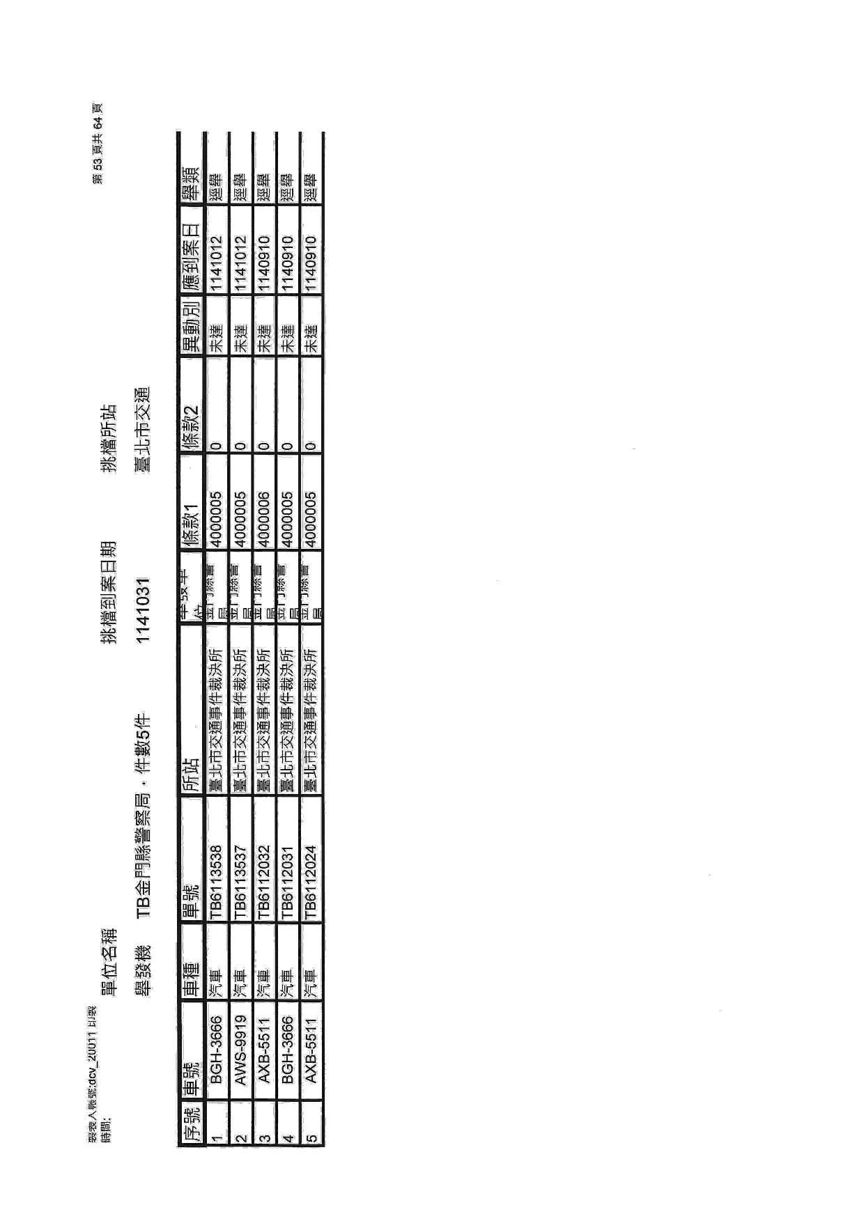 臺北市交通裁決所1141031未達清冊