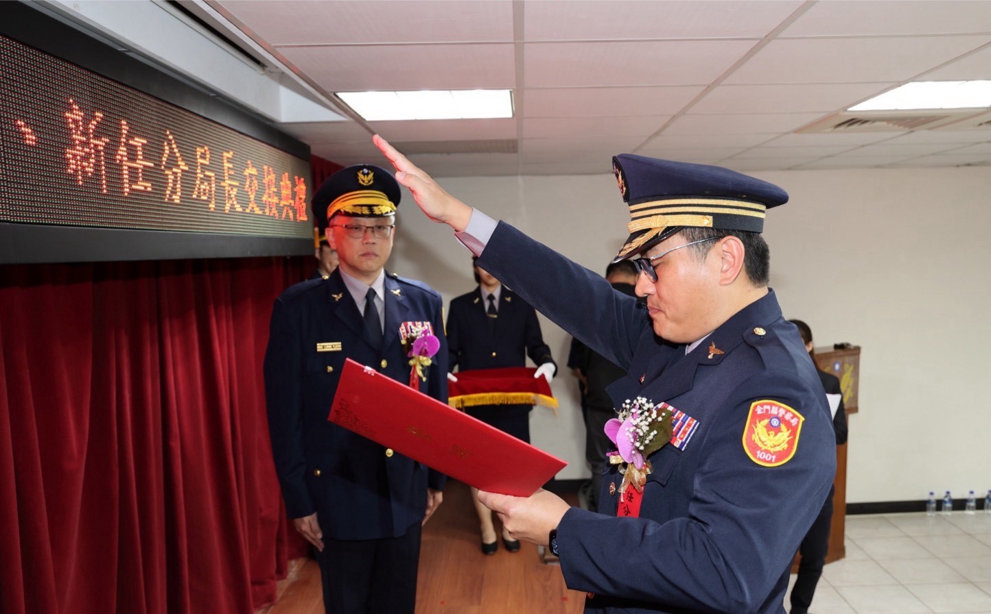 本局金城分局於4月21日下午2時30分整在金城分局3樓禮堂舉行卸、新任分局長交接典禮,由局長黃壬聰主持。金城分局分局長朱政憲,原由二線三星職務陞任二線四星職務,併本次交接典禮辦理授階。