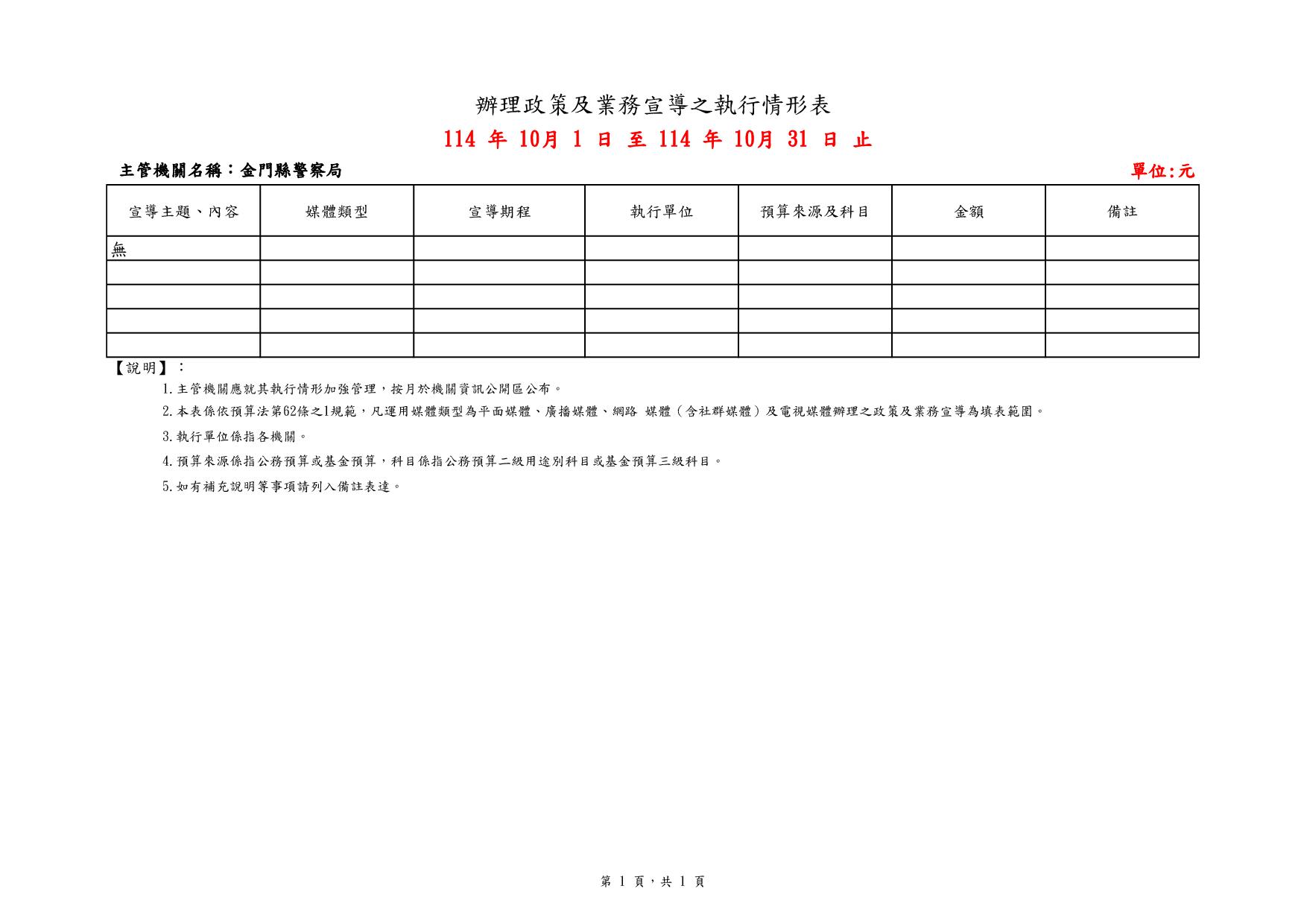 114年辦理政策及業務宣導之執行情形表